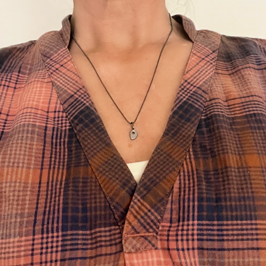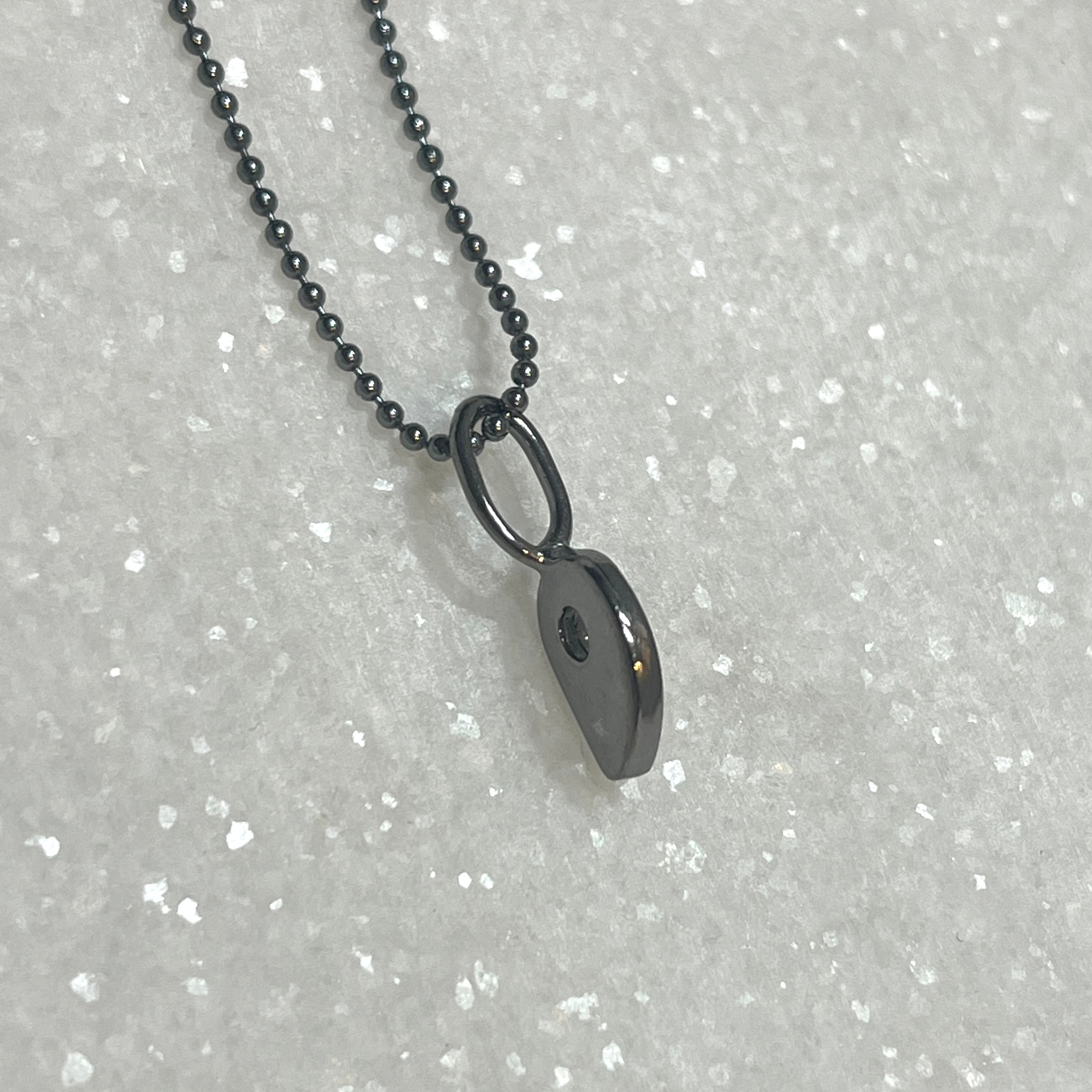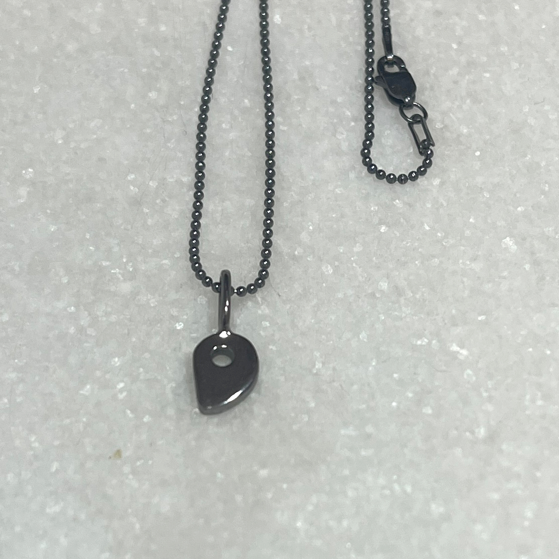Ser fantastisk ut på dette delikate 1 mm ankerkjedet - kanskje en liten klatrerbabygave? For baby/barn-størrelse anbefaler jeg den ene i sølv på et 36 cm langt kjede.