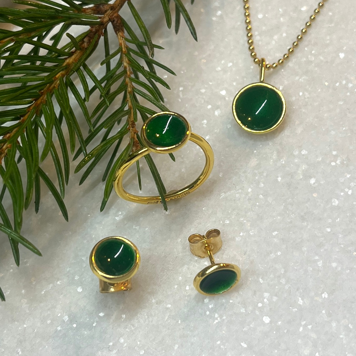 Mix and match different colours and sized studs, necklace and rings. The Dots are forever! This plain design will never go out of style and are designed for comfortable wear on your adventures. The Dot measure about 12 mm and the ring is adjustable to fit up to about size 59. In stock means it can be sent within a day or two. If your choice of colour is on backorder, I will start making your piece when you order. It will vary from time to time, but please allow 2-6 weeks from your order until it’s ready. Handmade and enamelled in Norway and/or Sweden by Catrine Linder. Please read how to take care of your enamel jewellery here.