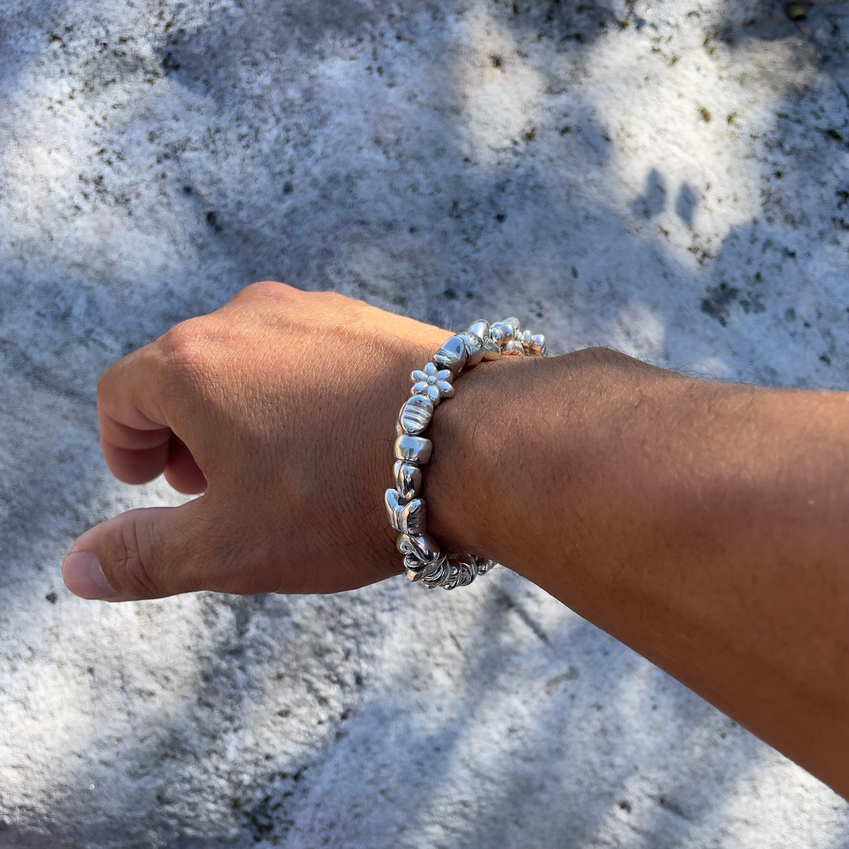 Transform cherished memories into wearable art with our signature Heirloom Beads bracelet. Meticulously handcrafted from solid 925 sterling silver, this substantial piece reimagines the colorful plastic bead bracelets of childhood as a luxurious adult treasure.